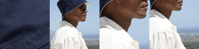 100% cotton twill. Fully reversible style.Flat top.Stitched ventilation eyelets.Removable adhesive label.