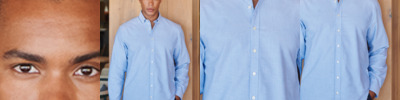 70% cotton/30% polyester. Wrinkle resistant fabric.Regular fit.Short point button down collar.Pearlised buttons.Back yoke.Twin needle side seams.Two button adjustable cuffs with button on cuff gauntlet.Curved hem.Tag free.