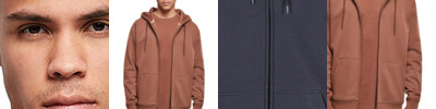 6.49 oz./yd2 / 220 gsm, 100% polyester mélange jersey bonded with fleece; Center front coil zipper with semi autolock slider ; Front hand-warmer pouch pockets; Tonal coverstitch details at shoulders;