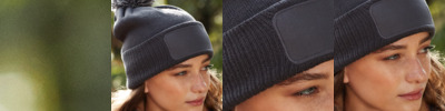 100% soft touch acrylic.* Double layer knit.Ribbed cuff.Two tone pom pom.Cotton twill patch for printing (10 x 5cm).Tear out label.Compatible with original patch silicone template, BT101.