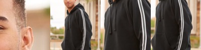 9.8-oz, 60/40 cotton/polyester lightweight fleece. Combed and RING SPUN cotton. 3-end fleece. Unlined hood with no drawstring. Flat lock seams. Superior printing surface. Modern fit.
