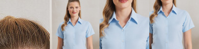 Cotton combined with elastane makes for a super soft, stretchy and comfortable fitted shirt for ladies. Double buttons on the cuff, together with a single button sleeve guard allows for a either a formal arm or a more casual roll back option. Styled with a soft cut-away collar with top button- which again, can be worn formally with a scarf or open collared for a more relaxed look.