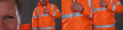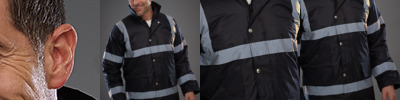 - Two 5cm reflective tape bands around the body, sleeves and one over each shoulder.