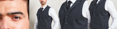 An attractive, versatile waistcoat for men. Styled with a lapel collar that leads into the main body of the waistcoat with five button fastening. The herringbone pattern has been achieved by two coloured yarns being woven together. This waistcoat is fully lined on the underside and to the reverse where there is a buckle for the wearer to adjust accordingly. Features two front open pockets.