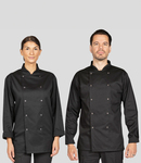 65% polyester/35% cotton. Unisex styling.Mandarin collar stand with topstitching.Stainless steel studs.Open cuffs.Domestic wash 60°C.