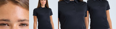 Wicking fabric. Polo shirt. Short sleeve. Mesh panels on sides. 3-button placket. Self-fabric collar. We recommend using block out vinyl and inks.Product contains no branded neck or waist label. Removable Kimble or looped garment tags. Inner seam label holds important product information on one label with a second label containing brand information which can be cut-away. UPF 40+.