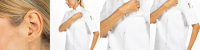 65% polyester/35% cotton. Unisex styling.Mandarin collar stand.Stainless steel stud closure.Industrial or domestic wash 60°C.