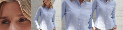 Women's modern fitted, button-down Oxford shirt. Cotton-rich lightweight Oxford with wrinkle resistant finish. Short point collar. Pearlised buttons.