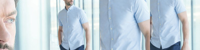 4.9 oz/yd² / 165 gsm, 100% polyester cotton-feel birdseye mesh; Moisture wicking; UV protection; Self fabric collar with integrated collar stand and built-in collar stays; Luxury, comfort and performance in one; Stylized open placket; Curved back yoke with center pleat;