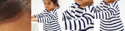 100% organic combed ringspun cotton. Organic or in-conversion to organic cotton.Yarn dyed stripes.Soft stretch fabric.Nickel free navy shoulder poppers.Side vents.Drop tail.Twin needle stitching.Tear out label.