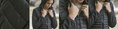 300T polyester outer. Polyester padding and lining.Showerproof and breathable.Shaped fit.Grown on adjustable hood.Soft shell sleeves.Full length zip with chin guard and inner zip guard.Right chest zip pocket.Inner zip media pocket.Two front zip pockets.Elasticated bound cuffs and adjustable hem.Branded zip pulls.Zip access for decoration.