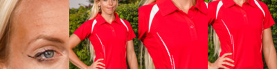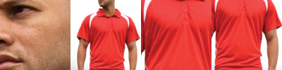 100% textured polyester. Cool-Dry© waffle knit mesh panels.Fabric is moisture wicking and quick drying.Three self colour button placket.Contrast panel on raglan seams.Contrast print on sides.Twin needle stitching.Branded bottom right hem.