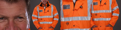 300D PU coated oxford polyester outer. Polyester mesh lined.Conforms to EN ISO 20471: 2013 + A1: 2016 class 3.RIS-3279-TOM (orange colourway only).Outer jacket is waterproof with stitched and taped seams.Windproof.Concealed detachable hood.Full length zip with a studded storm flap.Two reflective bands around the body, sleeves and one over each shoulder.Right chest media and ID pockets.Two D-rings.Left sleeve pocket.Two front patch pockets with studded flaps.Tear release adjustable cuffs.Drawcord hem.Access for decoration.Detachable, reversible two tone hi-vis jacket.300D polyester outer with PU coating.Black diamond quilted reverse on solid yellow and orange - navy reverse on contrast colours.Outer side conforms to EN ISO 20471: 2013 class 2.RIS-3279-TOM (orange colourway only).Collar high front zip.Contrast detachable sleeves with elasticated cuffs.Outer side has two reflective tape bands around the body and one over each shoulder.Media pocket with D-ring on chest.Both sides have two front pockets.