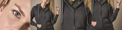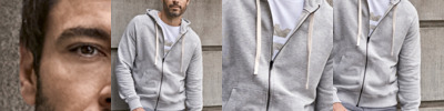 70% ringspun cotton/30% polyester. Brushed back fleece.Raglan sleeves.Fitted style.Two panel lined hood.Contrast striped drawcord with branded eyelets.Full length zip.Front pouch pockets.Ribbed cuffs and hem with elastane.