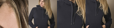 70% ringspun cotton/30% polyester. Brushed back fleece. Raglan sleeves. Two panel lined hood. Self colour drawcord with metal tips. Branded eyelets. Front pouch pocket. Deep ribbed cuffs and hem with elastane. 60°C wash.