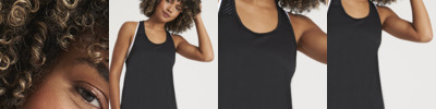100% polyester. Neoteric™ smooth fabric with inherent wickability and quick drying properties.UPF 30+ UV protection.Self fabric collar.Taped neck.Racer back style.Contrast mesh panel.Longer length.Curved drop hem.Tear out label.
