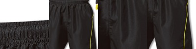 100% polyester with microfibre peached finish. Elasticated waistband with inner drawcord.Two side pockets.Rear pocket with tear release closure and key cord.Twin needle stitching.