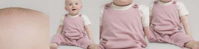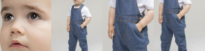 100% cotton denim. YKK poppers on straps, side seams and inseam.Two rear patch pockets.Jean style stitching on all seams.Tag free.