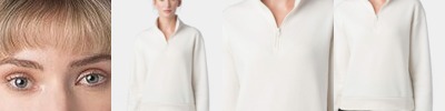 - Self-fabric mock collar with dyed-to-match quarter-zip closure