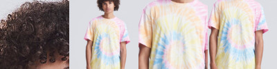 Modern fit with side seams. Short sleeves. Tie-dye design. Every piece is unique. Size label only, for easy rebranding – colour-coded black for unisex. Combed ringspun cotton for ultra comfort. Surface excellent for print or embroidery. Taped neck. Ribbed crew neck style. Twin-needle stitching detail on sleeve and bottom hem.