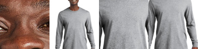 Retail fit Tear-away label Side seamed Ribbed cuffs Heather CVC/Blend Colors: 4.2-ounce, 52/48 Airlume combed and ring spun cotton/poly Athletic Heather/Black Heather: 4.2-ounce, 90/10 Airlume combed and ring spun cotton/poly Select colors XS-3XL