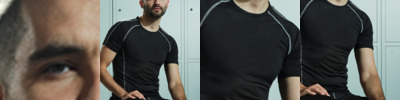 92% recycled polyester/8% elastane. Finished with added stretch for comfort. Quick drying and wicking performance fabric. Designed to be worn next to the skin. Self fabric collar. Featured stitching. Twin needle sleeves and hem. Cut out label.