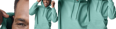 80% ringspun cotton/20% polyester.* Cotton faced fabric. Brushed back fleece. Drop shoulder style. Classic fit. Double lined hood with self colour drawcord. Tubular body. Front pouch pocket. Ribbed cuffs and hem with spandex. Twin needle stitching. Tear out label.