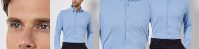 64% polyester/34% cotton/2% elastane piqué Tailored fit.Fused stand up button down collar.Back yoke.Double stitched armholes and side seams.Two button adjustable cuffs with button on cuff gauntlet.Straight hem.Superwash® 60°C.