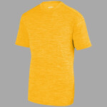 100% polyester heathered wicking knit * Wicks moisture * Tag-free label * Crew neck * Set-in sleeves