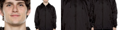 100% nylon shell, 100% polyester lining; Water resistant; Reinforced slant front welt pockets; Raglan sleeves with 1x1 rib cuff opening; Dyed-to-match exposed coil zipper with metal pull;