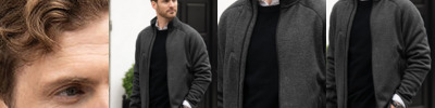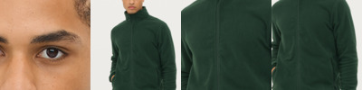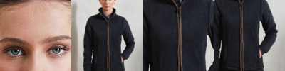Rubber zip puller at side pockets. Chest pocket with hidden zip. Bonded fleece in the inside.