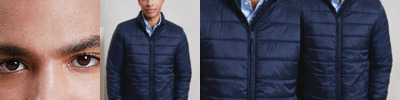 Men’s padded zip-through jacket with horizontal stitching to form baffles, ensuring an even distribution of insulation. Covered zip with chin guard and zip guard to the inner. Styled with a cadet collar. Two welt jet zipped side pockets with a single open pocket to the inner for handy storage. Elasticated cuffs measuring one inch wide. Full embroidery access to the entire jacket through an internal zip in the lining. Lightweight and folds downs easily into its own stuff sack. Made with 100% certified recycled fabrics.