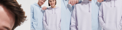 80% cotton/20% recycled polyester.* Drop shoulder style. Brushed back fleece. Double fabric hood with self colour lace drawcord. Taped neck. Front pouch pocket. 2x2 ribbed cuffs and hem. Unbranded size label at neckline.