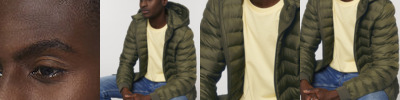 High collar with detachable hood including metal matte hidden snaps. Hood opening and bottom hem with adjustable plastic stopper and elastic cord. Zipped welt pockets with extra grosgrain pull. Fully quilted. 1x1 rib at sleeve hem.