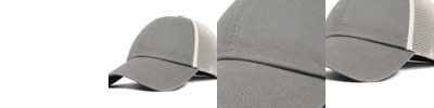 100% polyester heathered knit crown and mesh back; 100% cotton visor with 2" flat embroidery buck head; plastic snapback closure; imported;