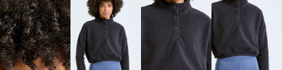 Cropped pull-over fleece with high neck. 1/4 neck popper fastenings to front. Elasticated waistband. We recommend using block out vinyl and inks.