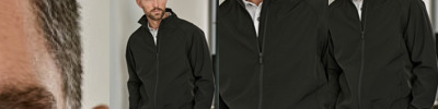 90% polyester, 10% spandex ; 100% polyester channel puffer with 3 oz. polyfil; Bonded softshell front shoulder and back; Water-resistant DWR finish; Zippered hand pockets ; Inside storm flap and chin guard ; Adjustable cuffs; Classic fit;