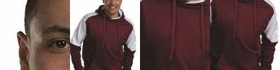 7.3 oz., 60% cotton, 40% polyester melange fleece; Self fabric scuba hood; Off-white drawcords; Set-on pouch pocket;