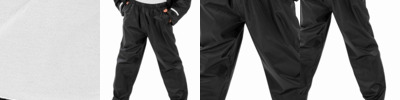100% polyester with PVC inner coating. Waterproof 2000mm with taped seams.Windproof.Elasticated waistband.Waist vents to access inner pockets.Open leg ends with snap adjusters.Cut out label.