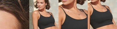 48% regenerated cotton/47% recycled polyester/5% elastane. Single jersey.Cropped bralette style.Adjustable spaghetti straps.Bound neck and armholes.Double layer front.Concealed elasticated band.Unbranded size label.Slight flecks are a natural result of the manufacturing process.