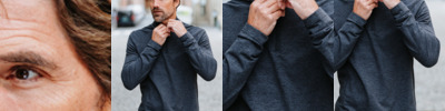 - Three-piece hood with collar stand and interior adjustable cord lock