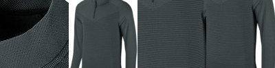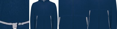 Contrast upper chest and underarm panels. Quarter zip. Side panels. Reverse nylon zips centre front and side pockets. 1x1 ribbed cuff sleeve. Semi-automatic zip pull and slider.