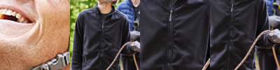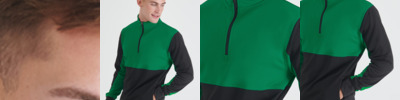 - Front pouch pocket with two hook & loop closures at top of pockets with headset opening