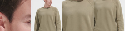 80% organic cotton/20% recycled polyester.* Cotton faced fabric.Brushed back fleece.2x2 cotton/elastane ribbed collar, cuffs and hem.Taped neck.Half moon back yoke.Unbranded size label at neckline.
