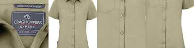 Short-sleeved shirt made with fabric too tough for insects to bite through. Recycled polyester cotton shirting and recycled zip tape. SolarShield collar. Nosi Defence technology.