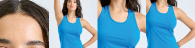 Scoop neck. Racerback. Curved hem. Recycled polyester. We recommend using block out vinyl and inks.