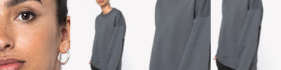 85% organic ringspun combed cotton/15% recycled polyester. Brushed back fleece.Drop shoulder style.Oversized fit.2x1 ribbed collar, cuffs and hem.Herringbone taped neck.Half moon back yoke.Twin needle stitching.Tag free.Recycled polyester is made from post-consumer waste.