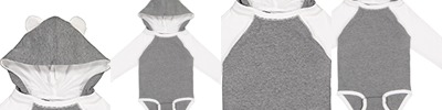 4.5 oz., 100% combed ringspun cotton fine jersey; Double needle hem and sleeves; 2-piece hood with self-fabric ears; Self-fabric back neck tape; Ribbed collar, side seam construction; Flatlock stitched raglan long-sleeve; Innovative three-snap closure; Snap Tape Technology that keeps kids safe and secure; Easytear™ label; Inventory is transitioning to plastic snap closure; CPSIA compliant tracking label in side seam;
