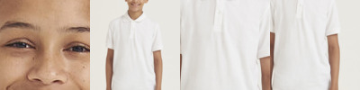 Relaxed fit. Reinforced shoulder seams. 1x1 flat knitted collar and cuffs. Two-button placket. Named label at back of neck. Taped neck. Spare button. Twin stitching for durability.