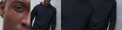 60% regenerated cotton/40% recycled polyester. Brushed back fleece.Drop shoulder style.Regular fit.Three panel hood.Self colour drawcord with metal tips.V detail at front neck.Taped neck.Ribbed cuffs and hem.Cut out label.